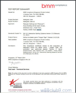 Hiện tại những sản phẩm của W88 có giấy chứng nhận BMM: Baccarat, Sicbo, Roulette, Super Keno, Rồng Hổ, RNG, Keno châu Á.