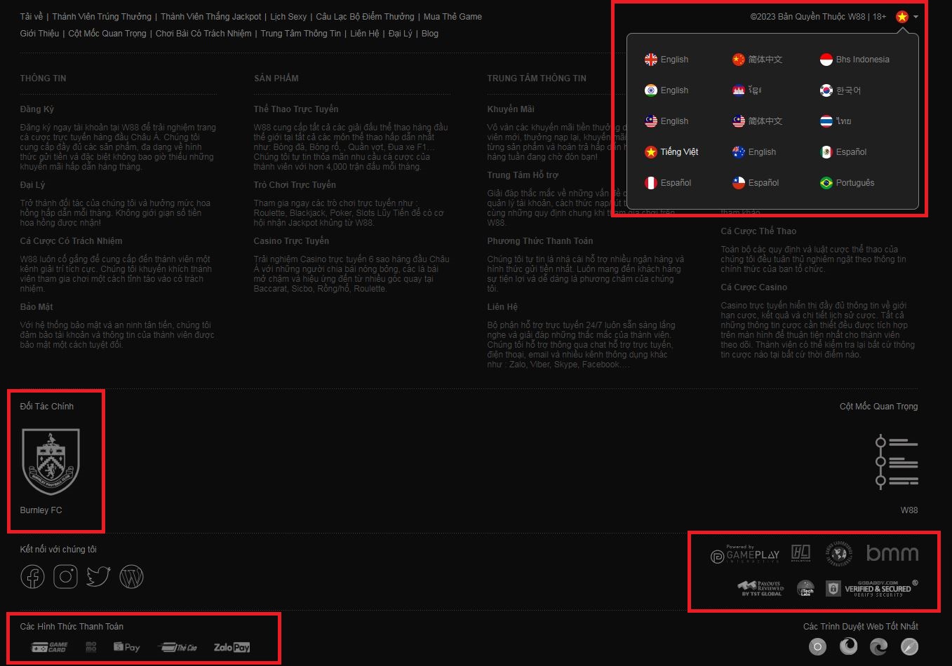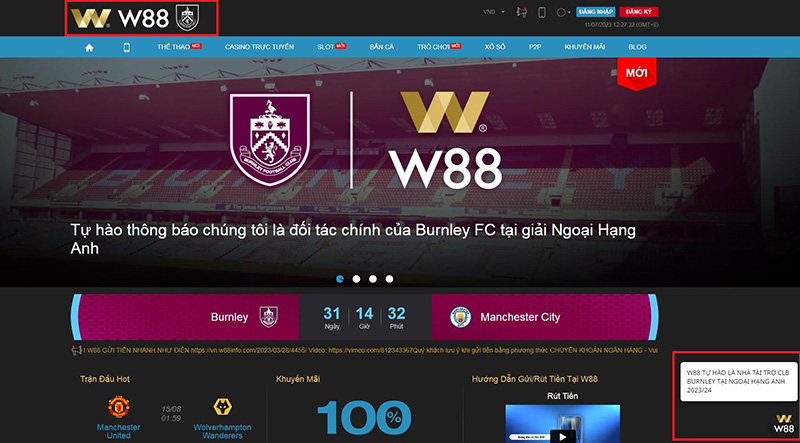 • Đối tác: Logo của CLB đối tác sẽ được nhà W88 chèn liên kết chính thức đến trang web của CLB Burnley.